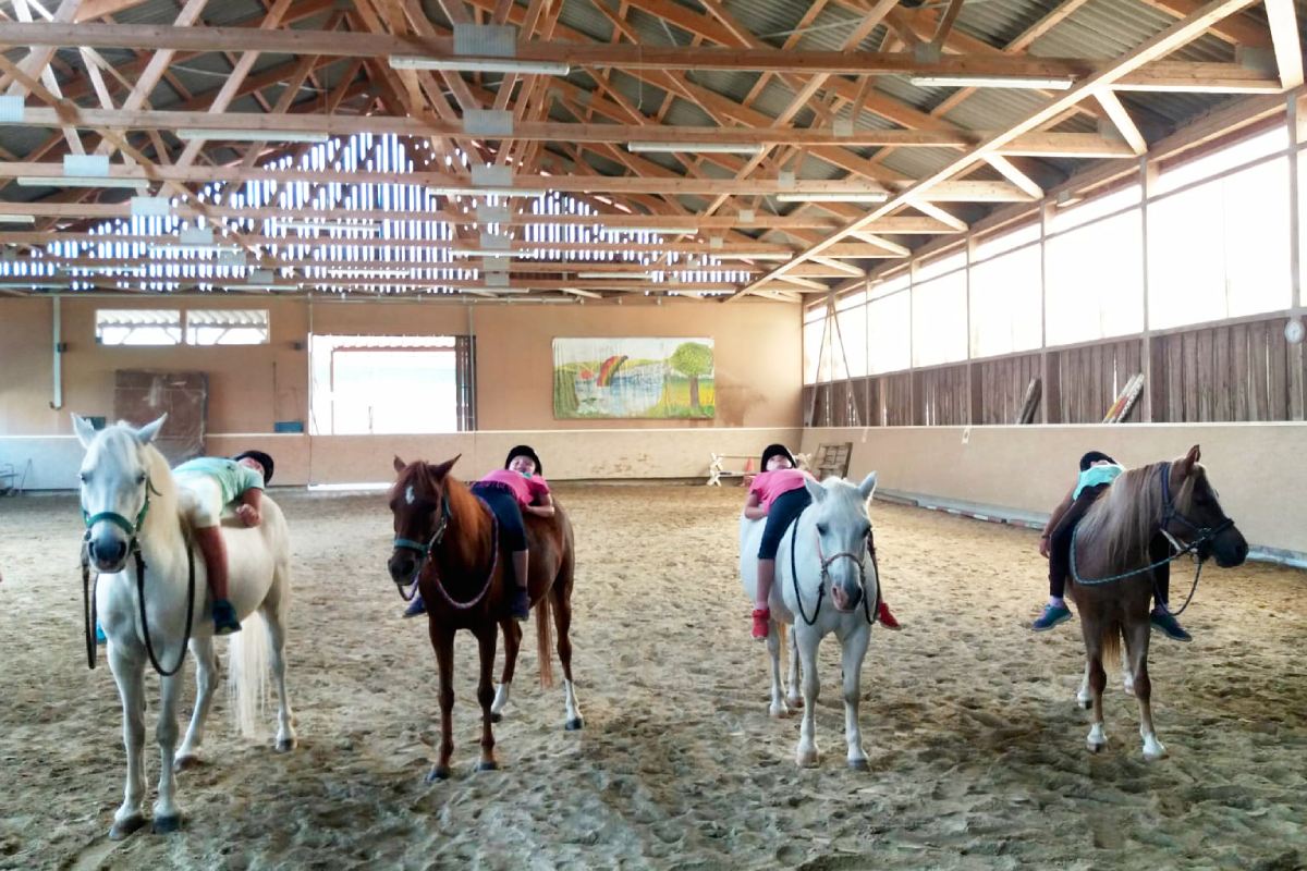 Das therapheutische Reiten wird von einer gelerneten Therapheutin geleitet und auf sehr ruhigen und geeigneten Pferde durchgeführt.